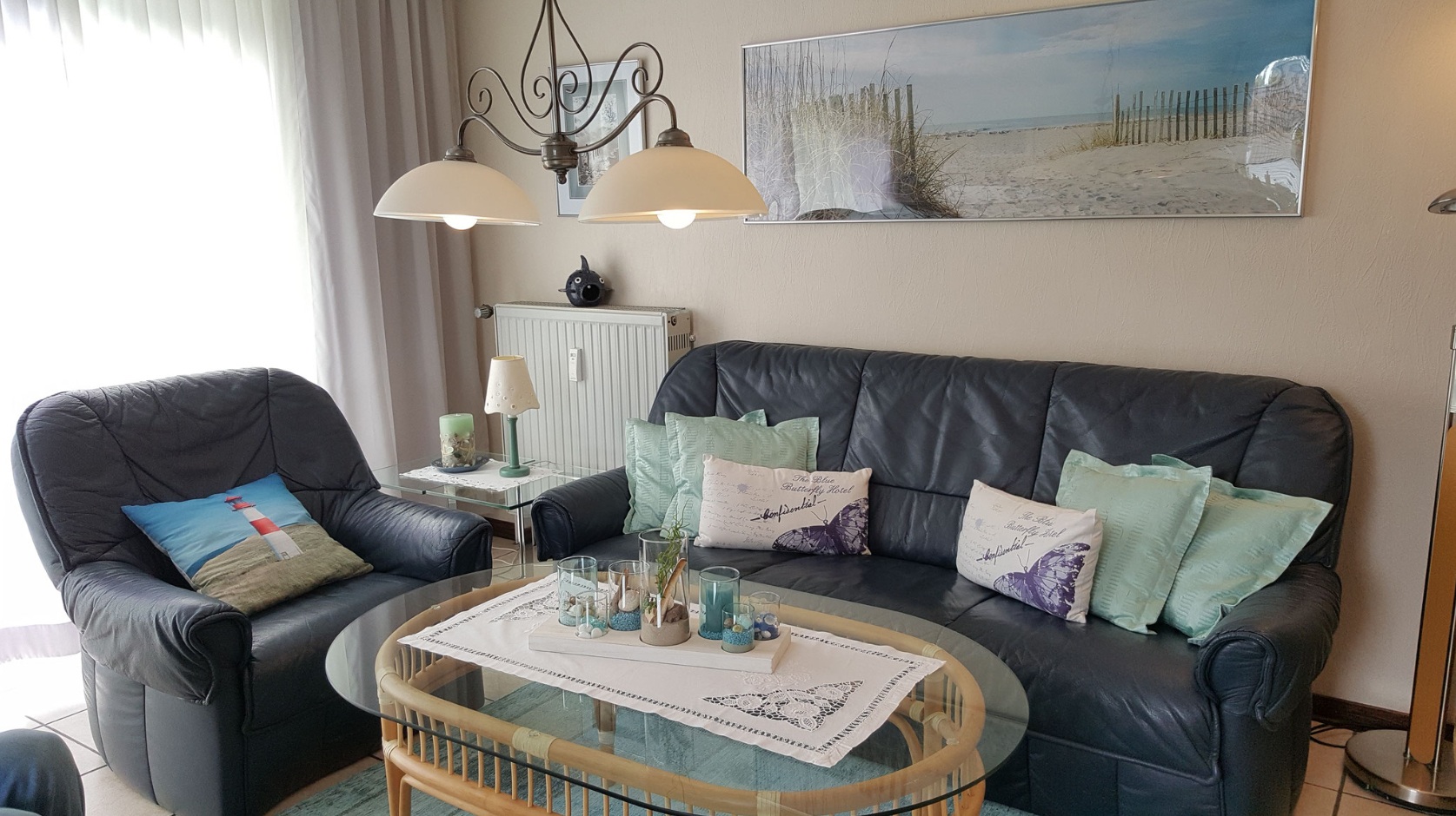 Das behagliche Wohnzimmer mit Sat-TV (Flachbildschirm), DVD-Player, Radio, Stereo Kompaktanlage, sowie der große Südbalkon mit Gartenmöbeln und Windschutz laden dazu ein, die langen hellen Sommerabende zu genießen. Ein WLAN-Zugang steht Ihnen kostenlos zur Verfügung.