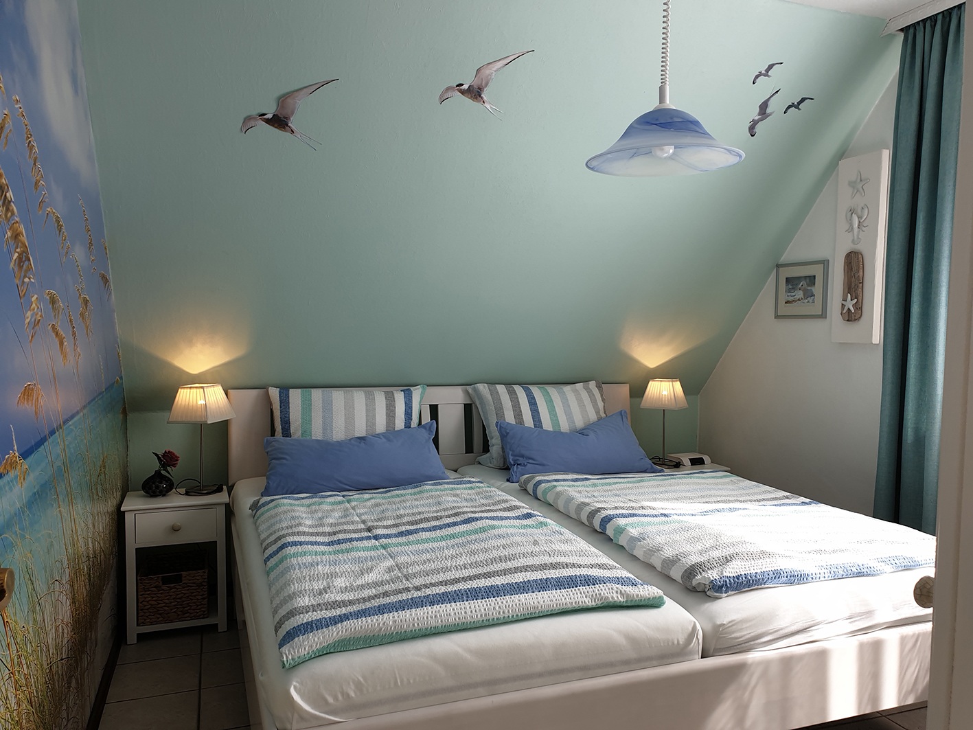 Das erste Schlafzimmer mit Doppelbett könnte Ihr "Lieblingsschlafplatz" werden. Der zweite Schlafraum im maritimen Flair, mit einem Tandembett und kleiner Sitzecke, erfreut auch Kinderherzen! Babybett und -Stuhl stehen Ihnen zur Verfügung.