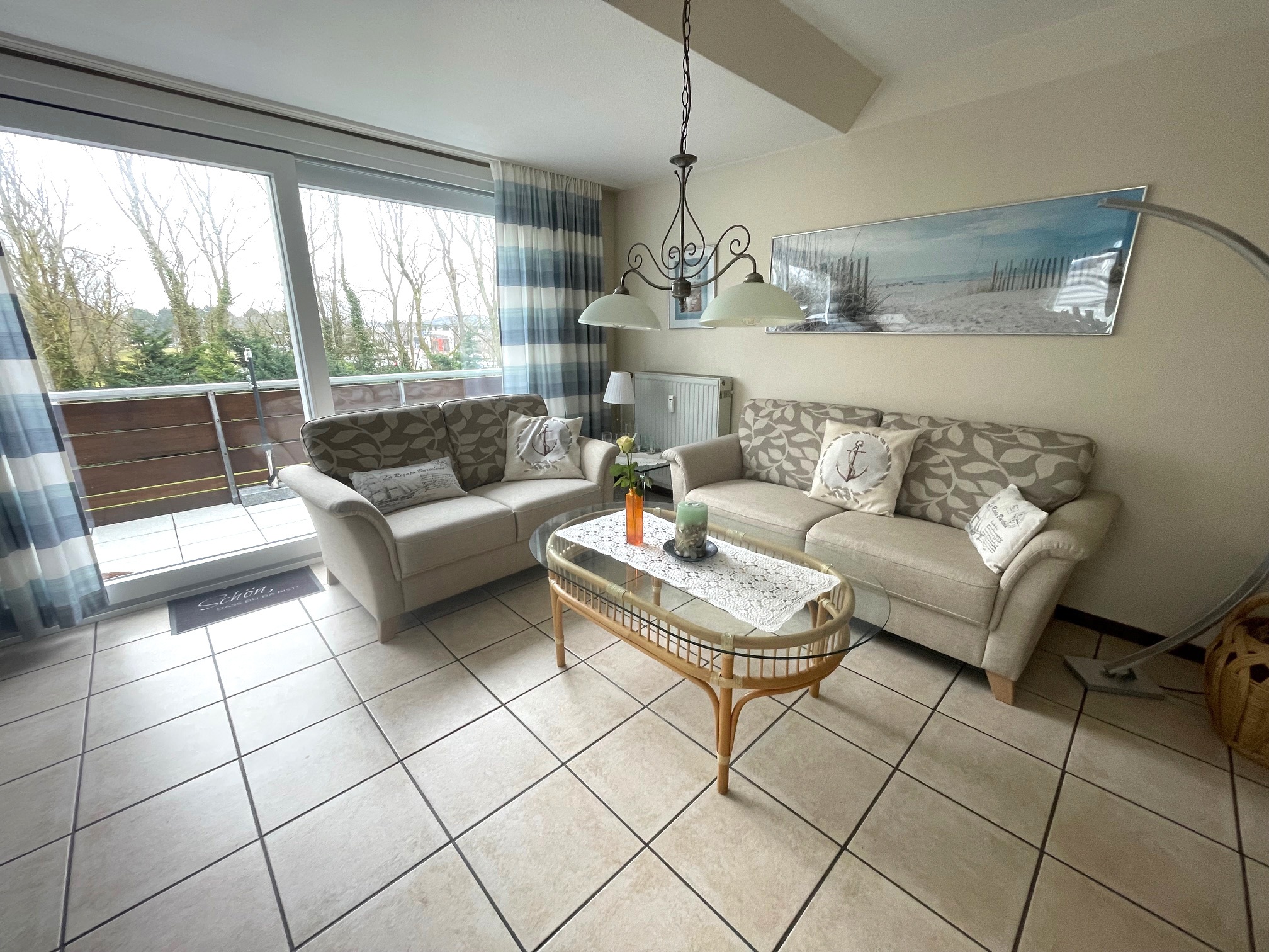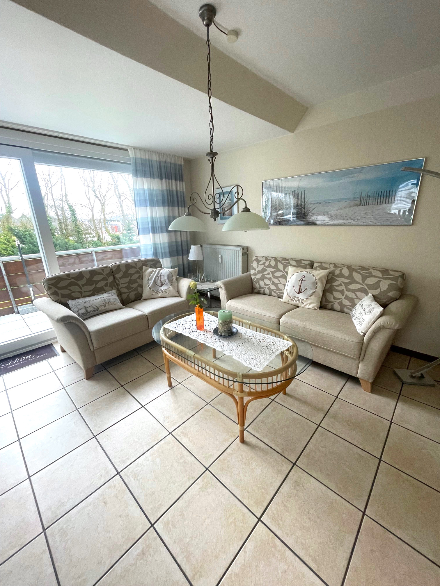 Das behagliche Wohnzimmer mit Sat-TV (Flachbildschirm), DVD-Player, Radio, Stereo Kompaktanlage, sowie der große Südbalkon mit Gartenmöbeln und Windschutz laden dazu ein, die langen hellen Sommerabende zu genießen. Ein WLAN-Zugang steht Ihnen kostenlos zur Verfügung.