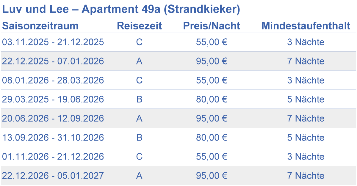 Alle Übernachtungspreise beziehen sich auf die komplette Wohneinheit.
