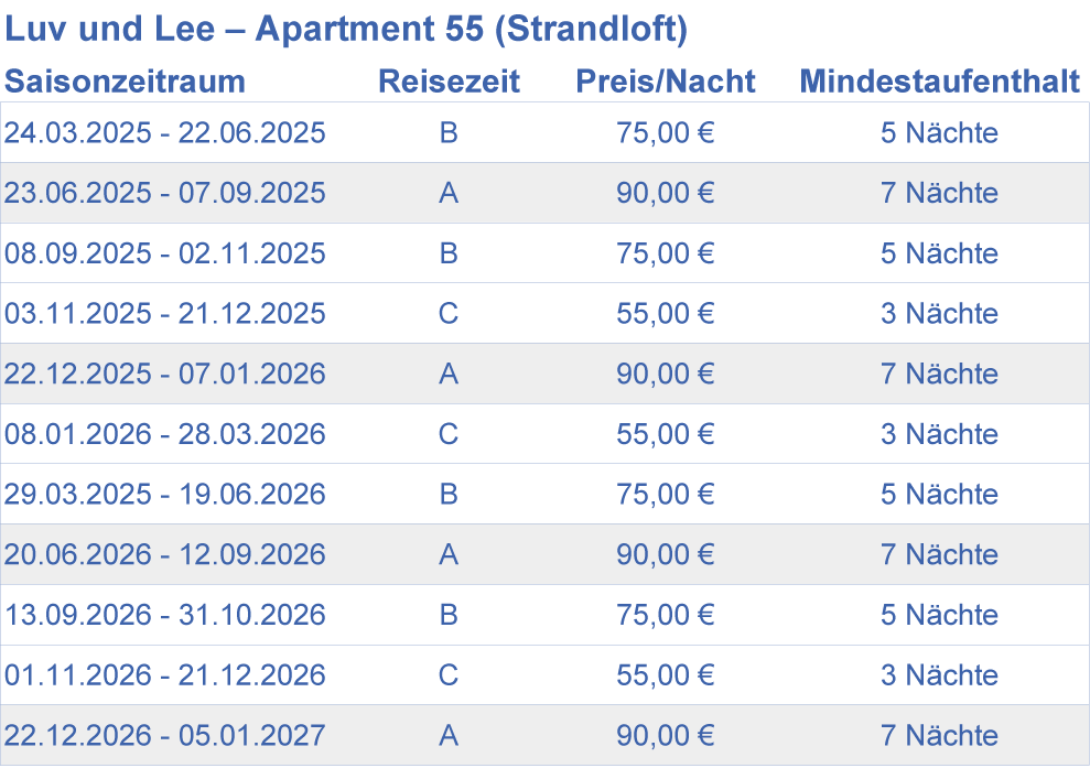Alle Übernachtungspreise beziehen sich auf die komplette Wohneinheit.