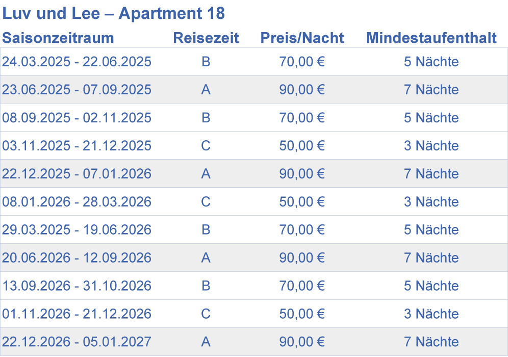 Belegzeitenkalender für Luv und Lee Apartment 18