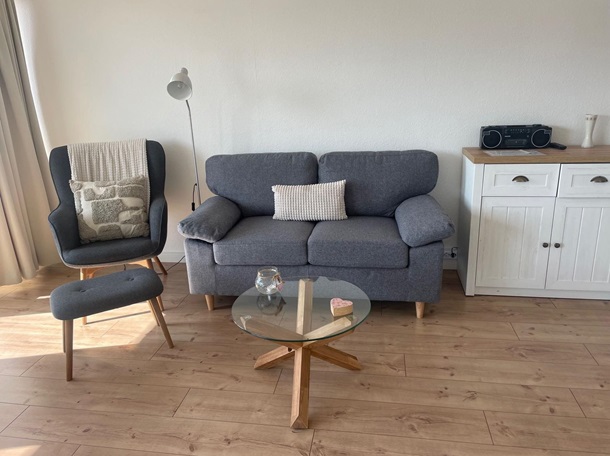 Schöne Wohnung im 2. Stock gelegen mit einen Wohn-Schlafraum in dem sich eine helle Schrankwand befindet mit einem großen Doppelbett, seperater Essbereich, eine Sitzgranitur. Des weiteren ist Küchenzeile vorhanden mit Ceranfeld und Dubnstabzugshaube, Kühlschrank mit Gefrierfach, Geschirrspüler, Kaffeemaschine, Wasserkocher und Toastern und ausreichend Geschirr, sowie ein Duschbad. Die Wohnung ist mit dem Fahrstuhl erreichbar.