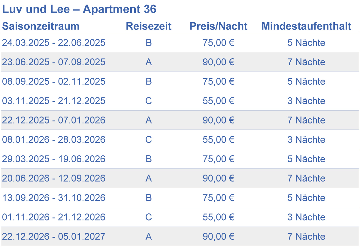 Belegzeitenkalender für Luv und Lee Apartment 36