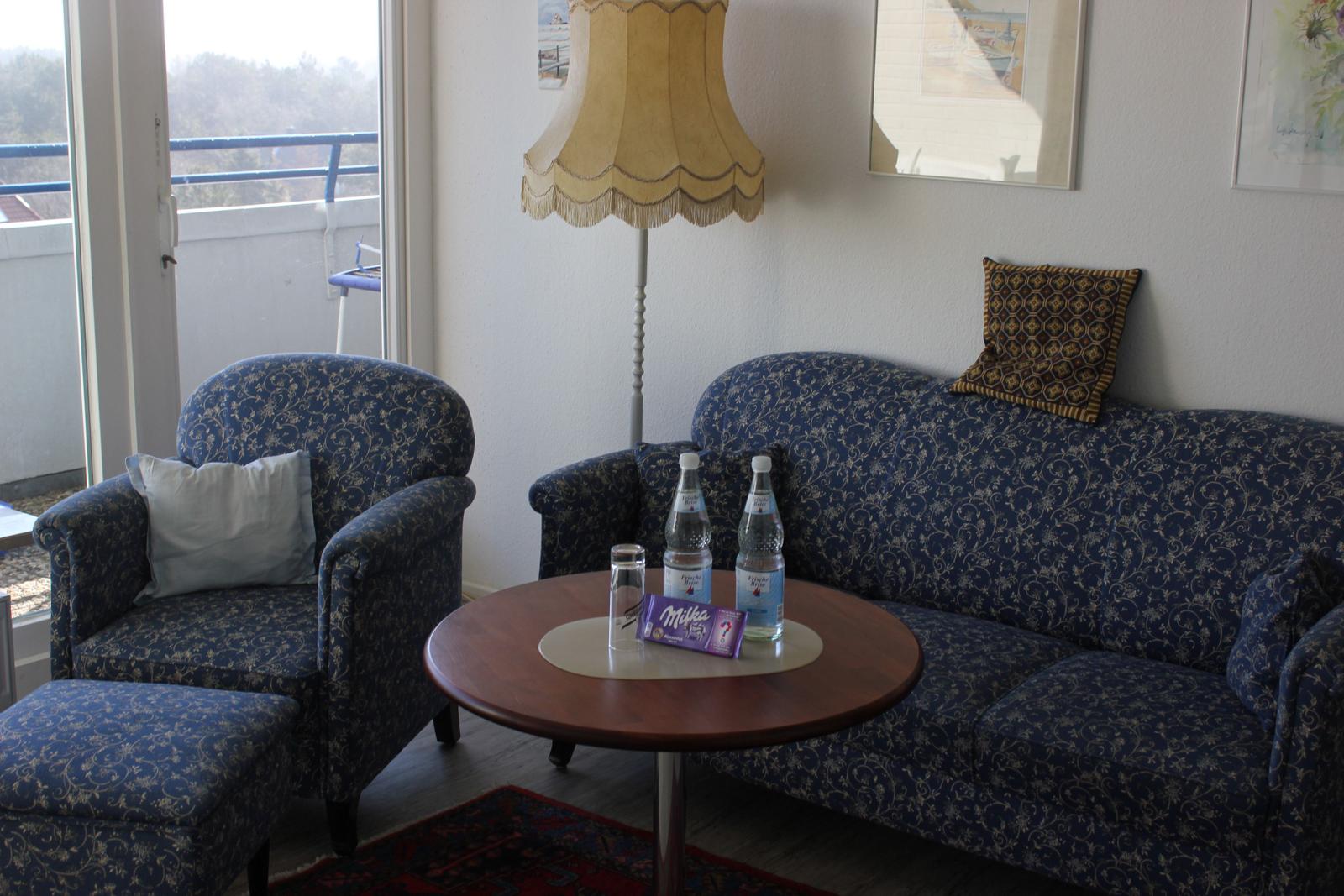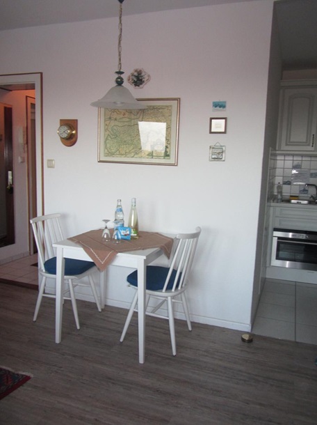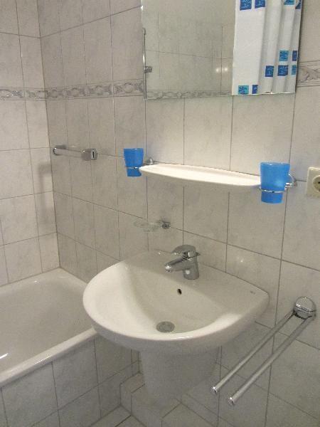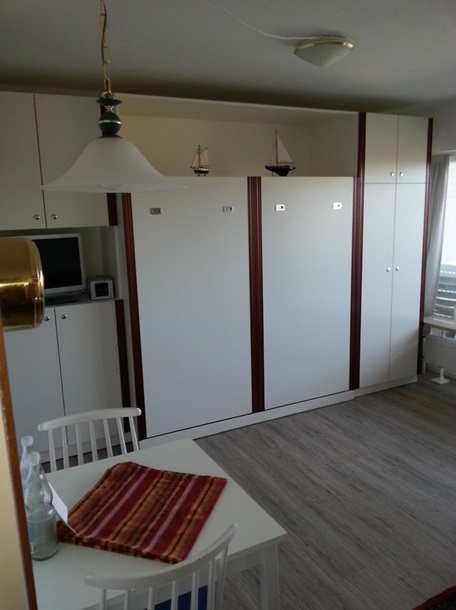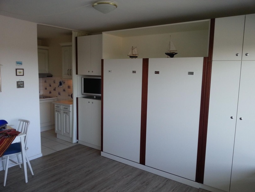 Die helle gut eingerichtete Wohnung liegt in der 6. Etage. Gemütiches Wohnzimmer mit Flachbildschirm großem Schrankdoppelbett 180 x 200 cm in der Schrankwand. Moderne Kochzeile mit Ceranfeld und Backofen, Kühlschrank mit Gefrierfach, Kaffeemaschine, Wasserkocher und Toaster. Modernes Vollbad mit Duschvorichtung und Fön.