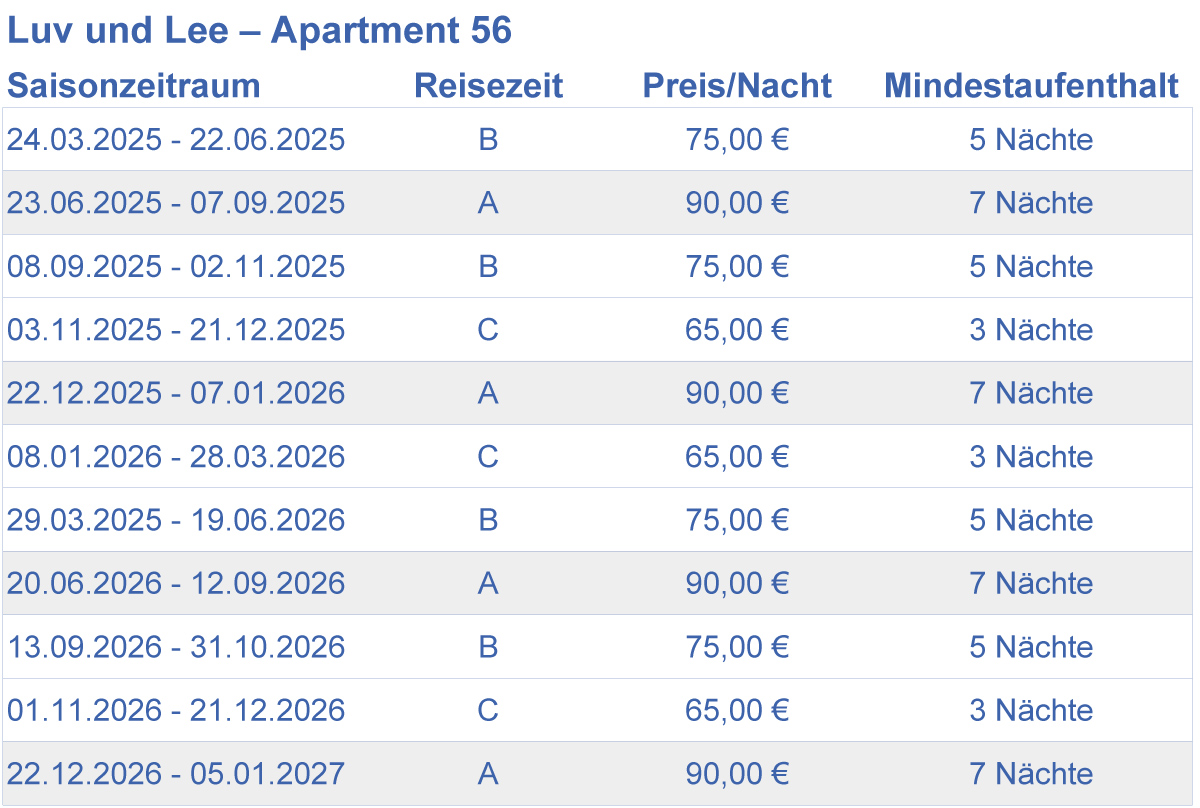 Belegzeitenkalender für Luv und Lee Apartment 56