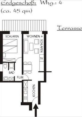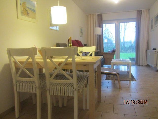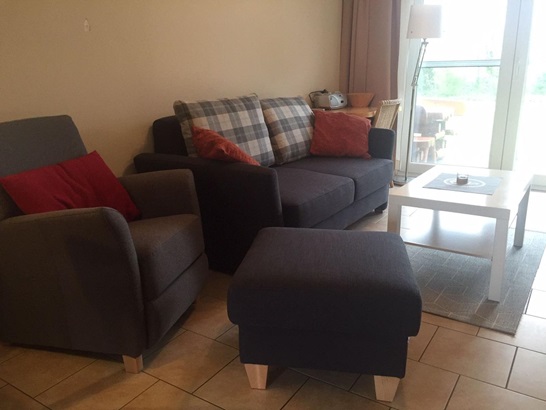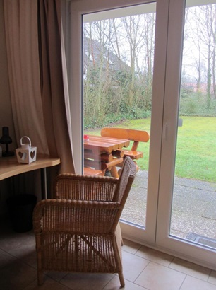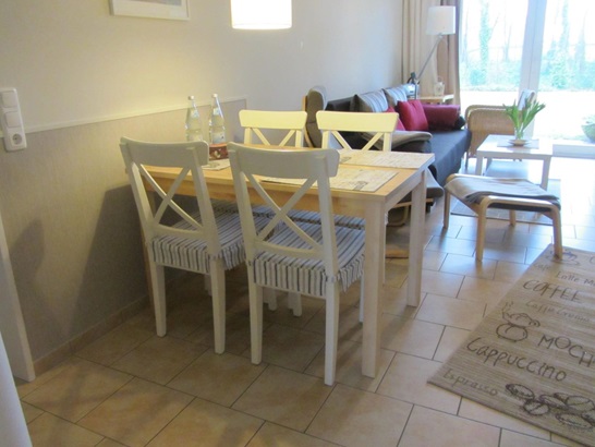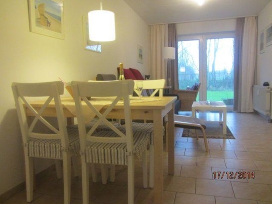 Die Wohnung besitzt eine Terasse mit Süd- West-Ausrichtung, auf der Sie wunderbar beim frühstücken oder einfach nur beim Sonnenbad entspannen können. Die Terrasse ist mit einem Strandkorb und Gartenmöbeln aus Holz ausgestattet.