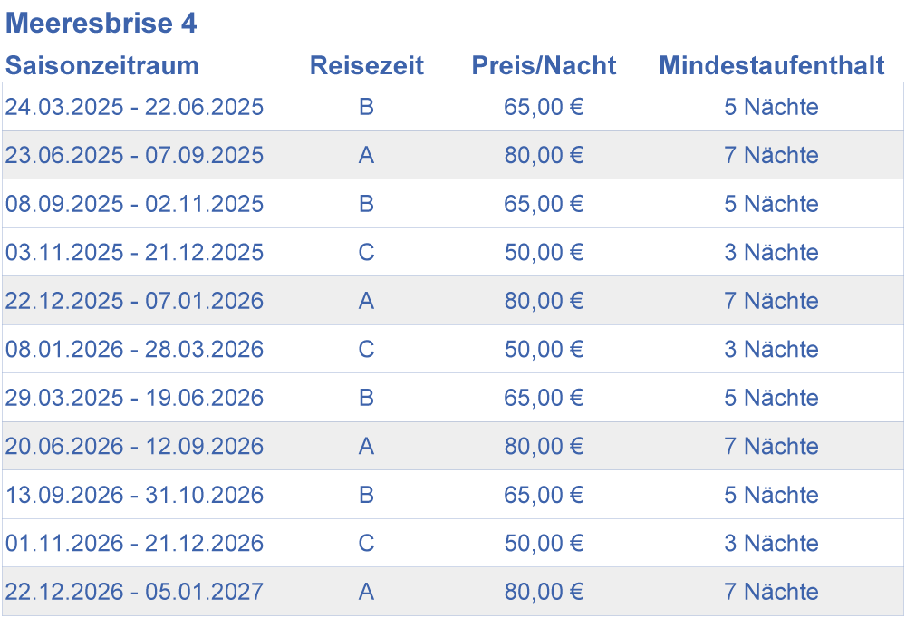 Alle Übernachtungspreise beziehen sich auf die komplette Wohneinheit.