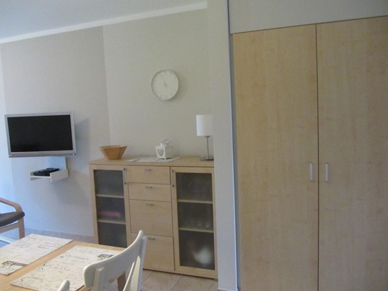 Die helle lichtdurchflutete Wohnung ist ausgestattet mit einer kompletten separaten Küche, einschließlich Herd, Backofen, Mikrowelle, Kühlschrank, Gefrierfach, Geschirrspülmaschine, Toaster, Kaffeemaschine, diversen Kochutensilien, Besteck, Geschirr usw. Der Urlaubskoch muß also nicht beengt improvisieren. Das großzügige Wohn-Eßzimmer hat Zugang zur Terrasse. Im WZ befindet sich eine Doppelschlafcouch, Sessel, Fernseher, Laptop-Tisch, Regal und ein Essbereich der Platz für 4 Personen bietet. Das moderne Duchbad hat Tageslicht und eine ebenerdige große Glasdusche ,ein Fön ist vorhanden. Internetzugang über WLAN steht für Sie zur Verfügung. Ebenfalls sind etwas Lektüre und einige Spiele vorhanden.