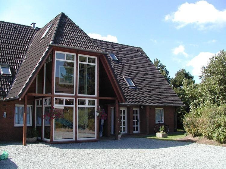 Das Haus ist von Friesenwällen, Kiefern sowie Ziersträuchern geschützt und umgeben, bietet PKW-Stellplätze, einen Fahrradunterstand und eine nach Süden gelegene über 500 qm große Liegewiese. WLAN über Hotsplots kostenfrei.